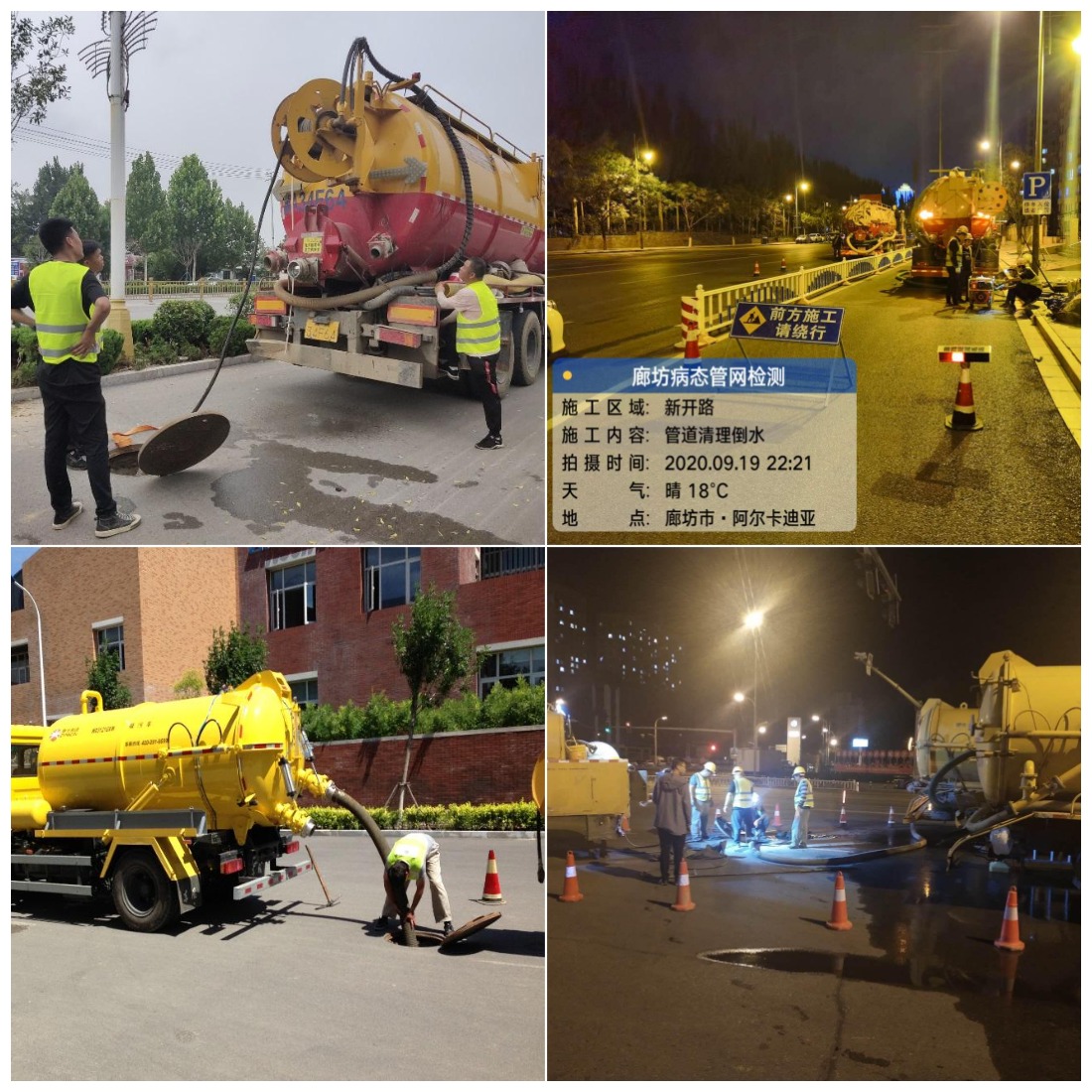 使用高壓清洗車進(jìn)行管道疏通,將高壓清洗車水帶伸入上游檢查井低部,把噴水口向著管道流水方向?qū)?zhǔn)管道進(jìn)行噴水,污水管道下游檢查井繼續(xù)對室內(nèi)淤泥進(jìn)行吸污。?